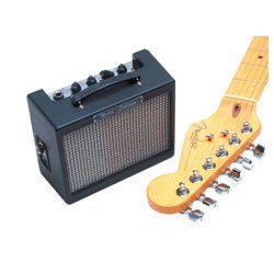 Perfect for noodling around on your guitar in your bedroom or hotel room, the Fender Mini Deluxe Amp provides just enough juice to get a feel for your jam session and is nicely portable. The single 8 ohm, 2-inch speaker pumps out one-watt of power, and it requires just a single 9-volt battery. The Mini Deluxe also includes a headphone jack for private playback, as well as control knobs for volume, tone, and drive.